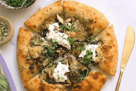 𝗦𝗮𝗴𝗲-𝗔𝗿𝘂𝗴𝘂𝗹𝗮 𝗣𝗲𝘀𝘁𝗼: 2 cups AeroFarms Micro Arugula ¼ cup fresh sage leaves 3 cloves garlic ⅓ cup toasted walnuts 1 tbsp fresh lemon juice & lemon zest ½ tsp sea salt or kosher salt ½ tsp freshly ground pepper ¼ cup extra virgin olive oil ½ cup Parmesan cheese (freshly grated) 𝗙𝗹𝗮𝘁𝗯𝗿𝗲𝗮𝗱: 1 lb pizza dough 2 cups wild mushrooms (roughly torn) 1 cup bok choy 8 oz Burrata cheese (room temperature) ½ cup fresh lemon micro basil or basil leaves red pepper flakes more microgreens for servingINSTRUCTIONS: