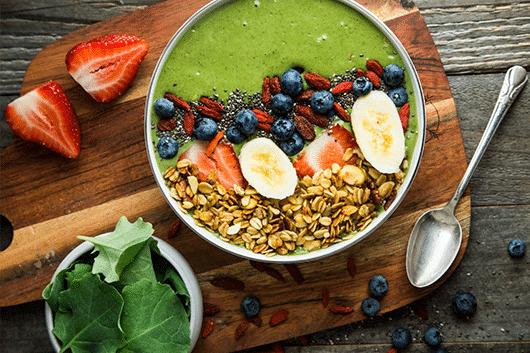 Smoothie bowls are healthy, delicious meals that deliver loads of vitamins and a slower, more mindful eating experience than guzzling that green smoothie on your commute. Top your bowl with fresh cut fruit, granola, nuts, and more!