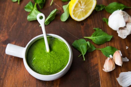 1. Combine AeroFarms Arugula with white wine vinegar in a food processor or blender until smooth.