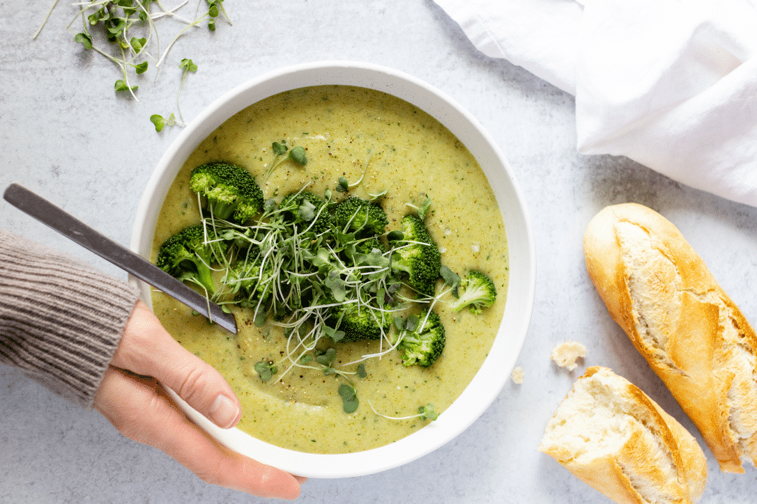 7. Divide soup among bowls. Top with more micro broccoli. Serve with crusty bread for dipping.